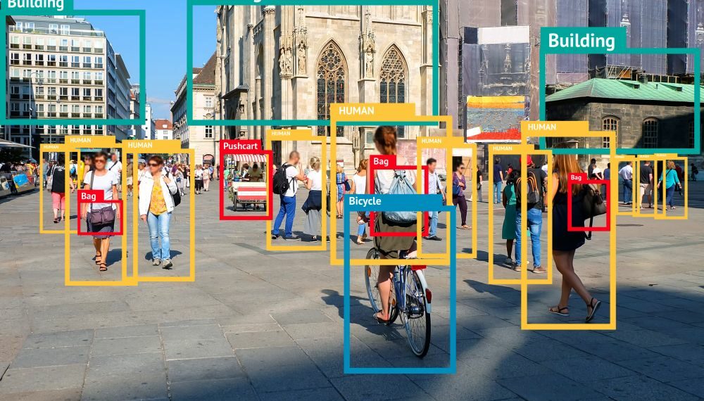 A machine learning systems engineer can add digital labels to an image by applying bounding boxes to the objects of interest within the picture. For example, the machine learning model might need to distinguish between humans and vehicles in a photograph containing both. Bounding boxes can be applied to the relevant elements (people and cars) and thus annotated.