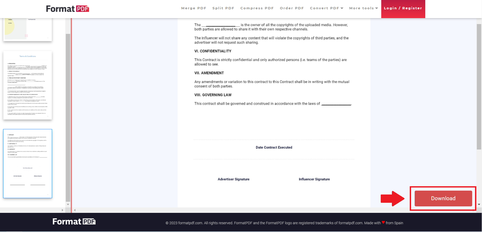 1. Once you have downloaded your business plan template PDF, open FormatPDF.com in your device’s browser, and click “English” in the top right corner.